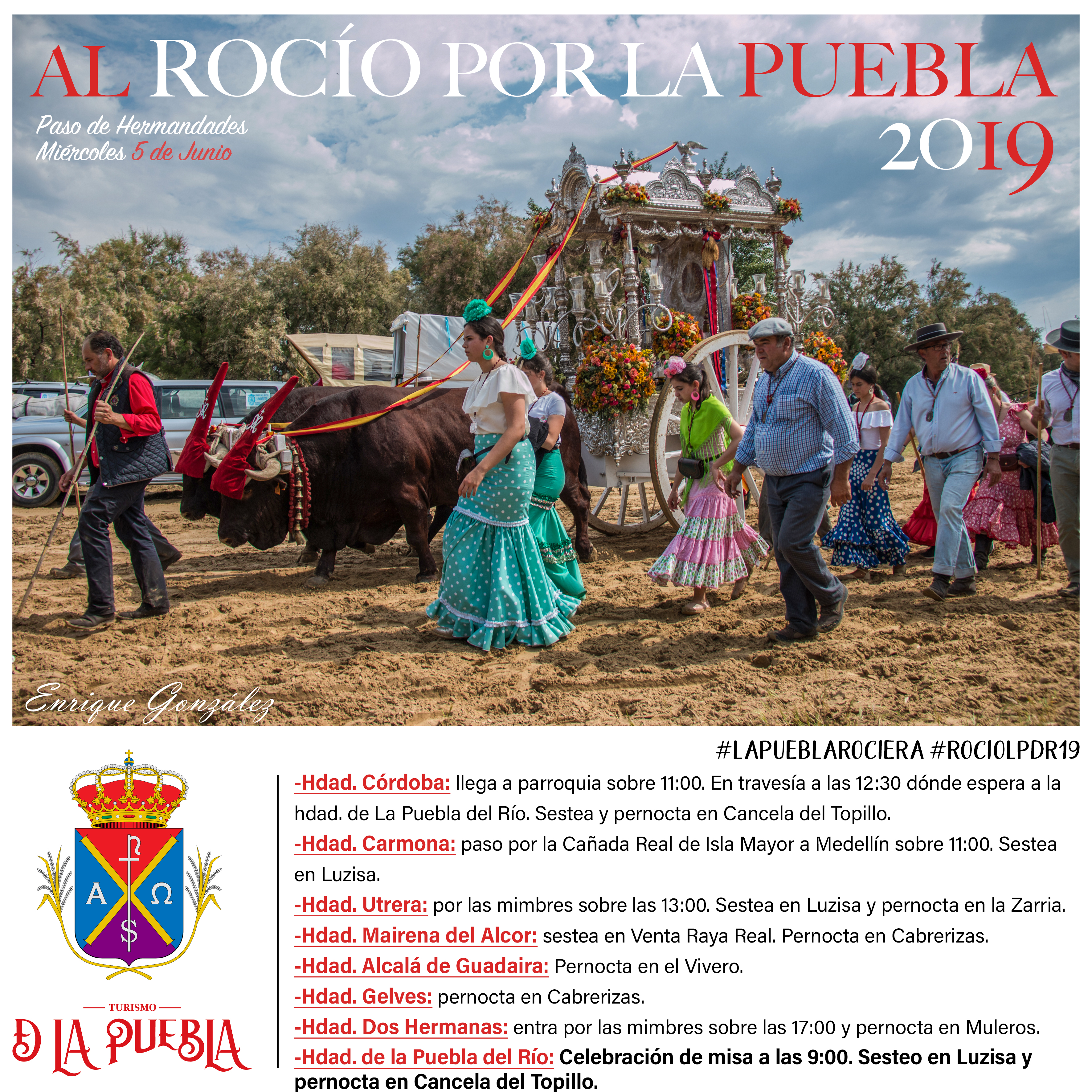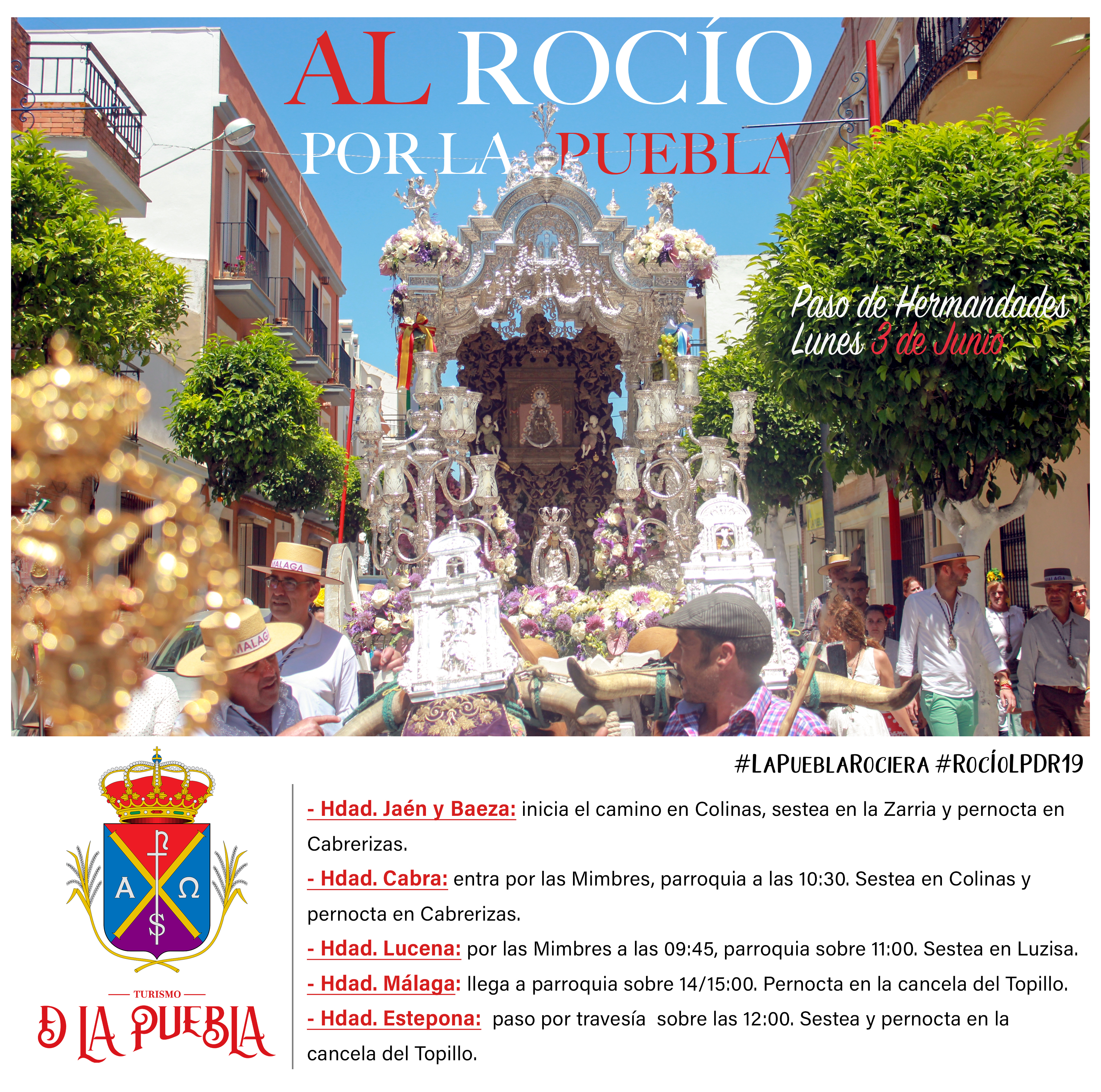 Relación de hermandades rocieras que sestean, pernoctan o cruzan por el término municipal #DeLaPuebla