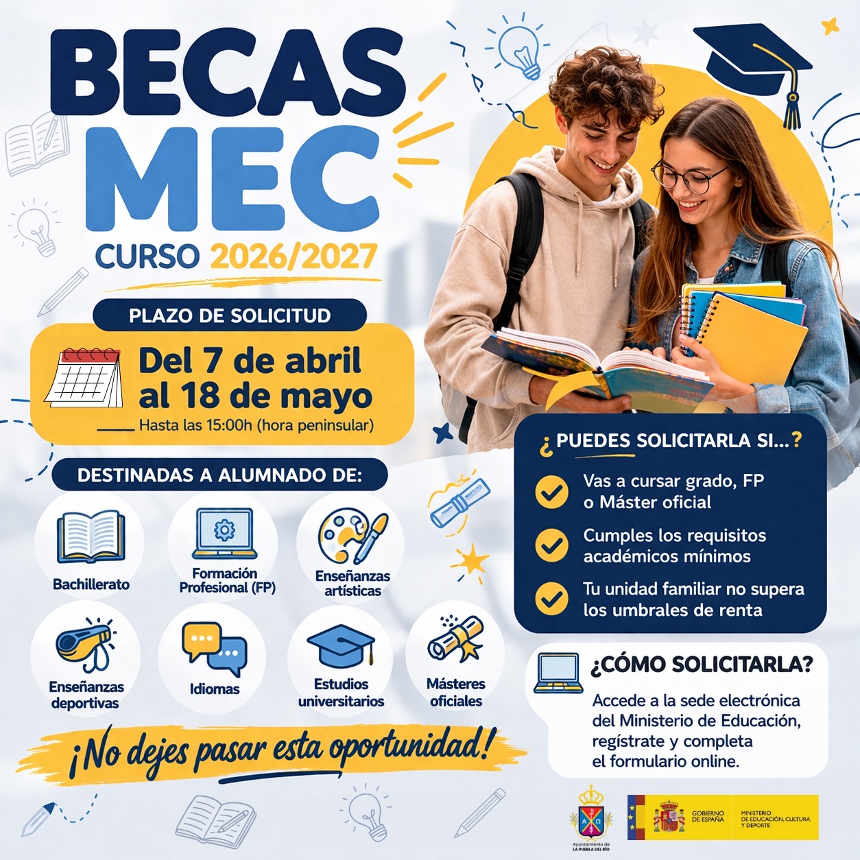 Desde ayer, 7 de abril, queda abierto el plazo para solicitar las becas MEC del curso 2026-2027, dirigidas a estudiantes universitarios y no universitarios.