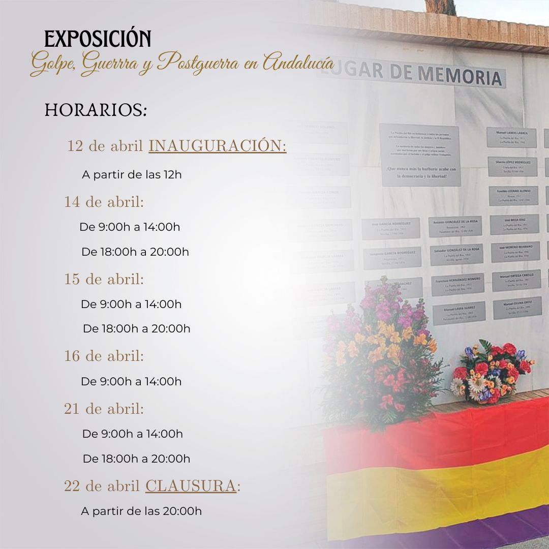 En el contexto de ese reconocimiento, del 12 al 22 de abril de 2025, en el patio del Ayuntamiento, estará abierta al público la exposición "Golpe, guerra y posguerra en Andalucía".