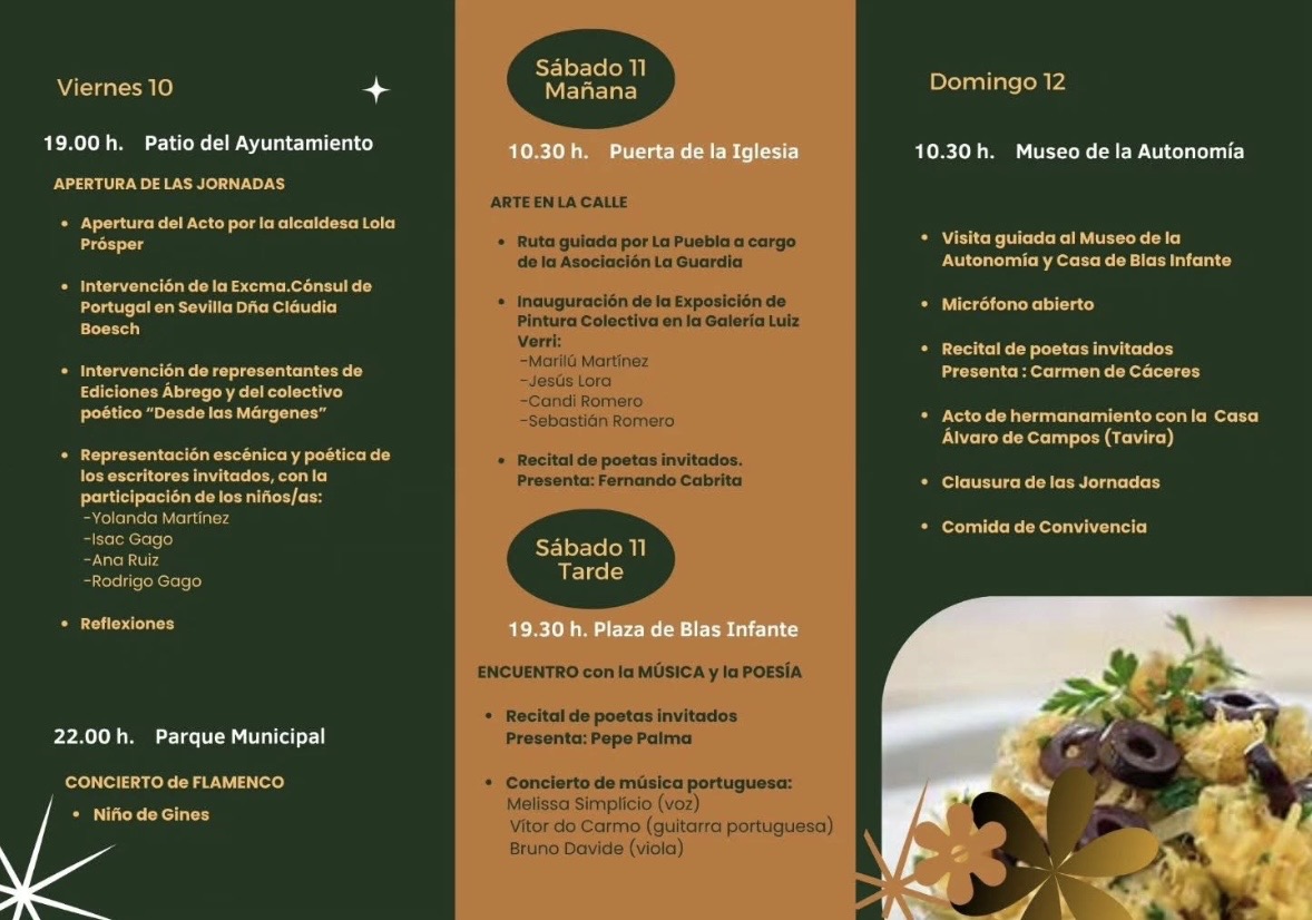 El evento cultural que une a artistas de España y Portugal se celebrará en La Puebla del Río los próximos 10, 11 y 12 de abril, con una programación que incluirá conciertos de fado y flamenco, exposición de artes plásticas, además de recitales poéticos y otras sugerentes propuestas. En esta tercera edición, además, tanto los escolares como la gastronomía tendrán un protagonismo especial, incorporándose a la programación como elementos que unen las culturas de ambos lados de la frontera.