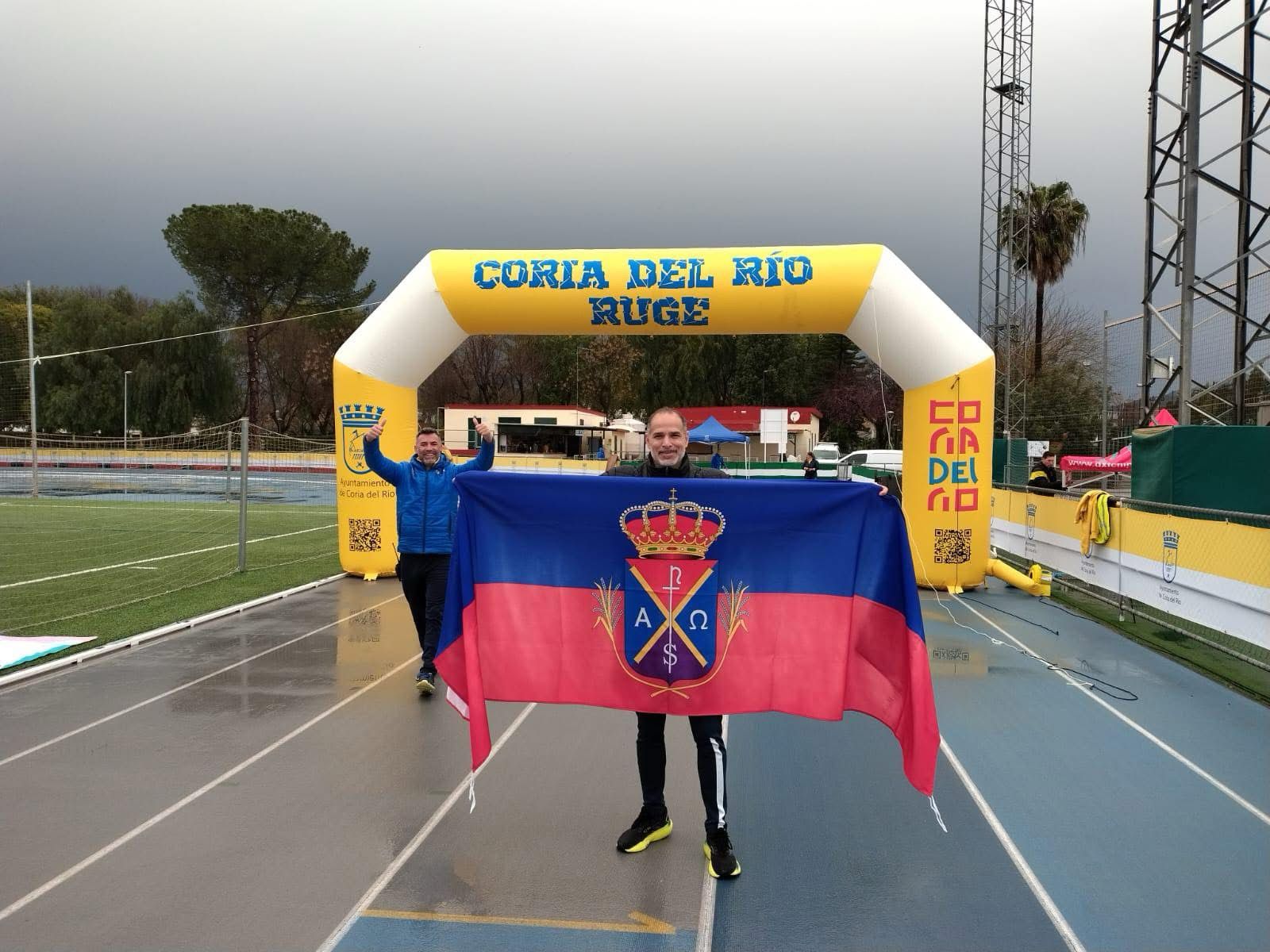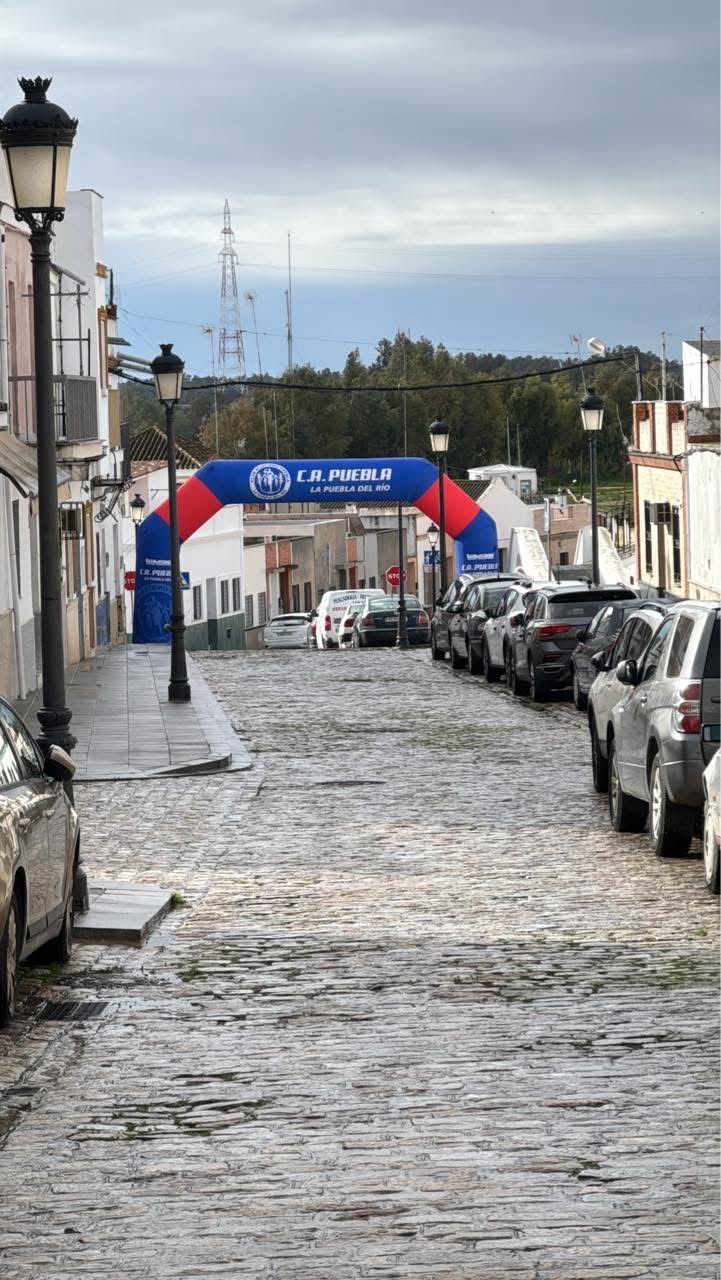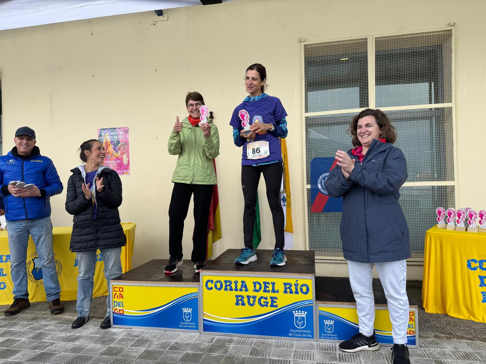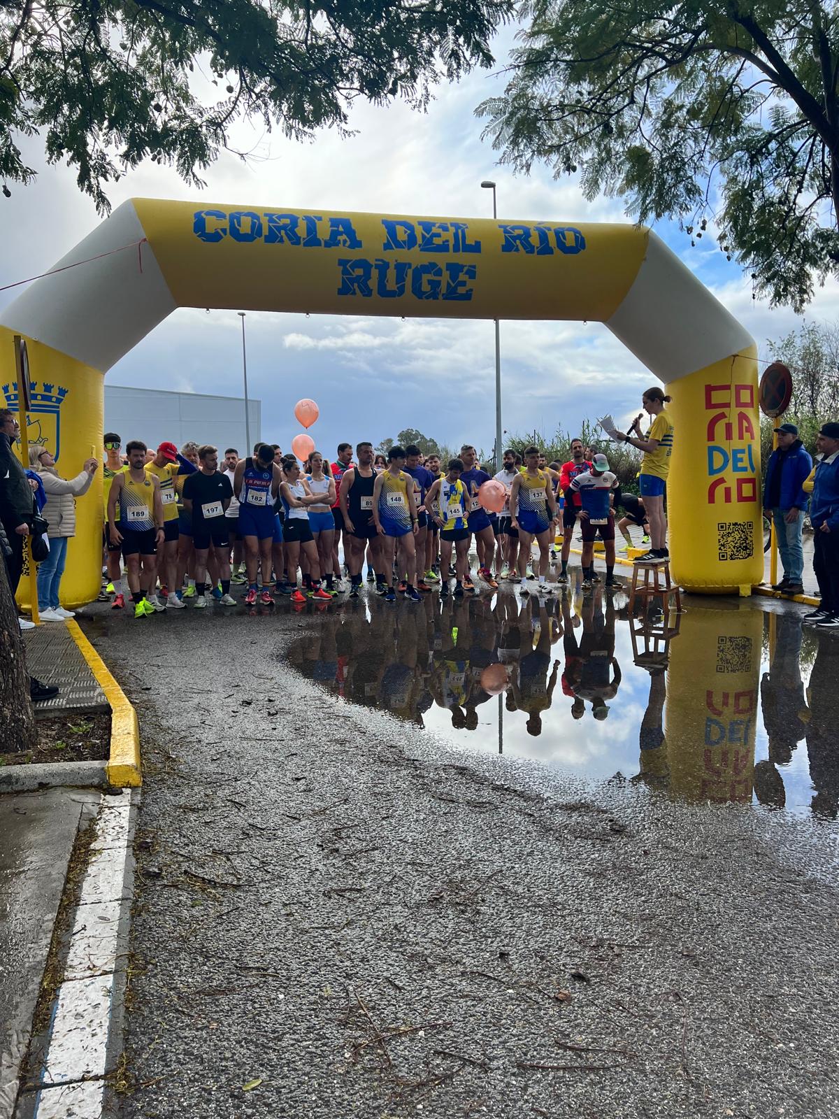 Carrera de la igualdad y contra el cáncer, desafiando a la lluvia, entre Coria y La Puebla del Río.