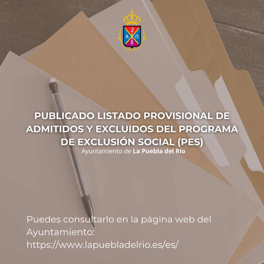 El Ayuntamiento informa de que ya está publicado el listado provisional de personas admitidas y excluidas del Programa de Exclusión Social (PES).