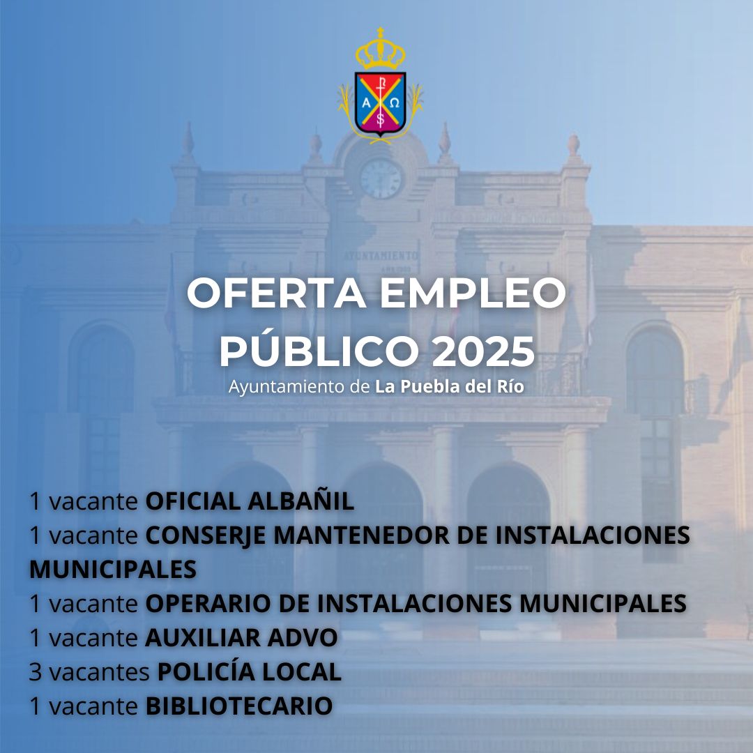 El Ayuntamiento de La Puebla del Río publica su OEP 2025, que incorpora nuevas oportunidades laborales que serán convocadas en un plazo máximo de 3 años.