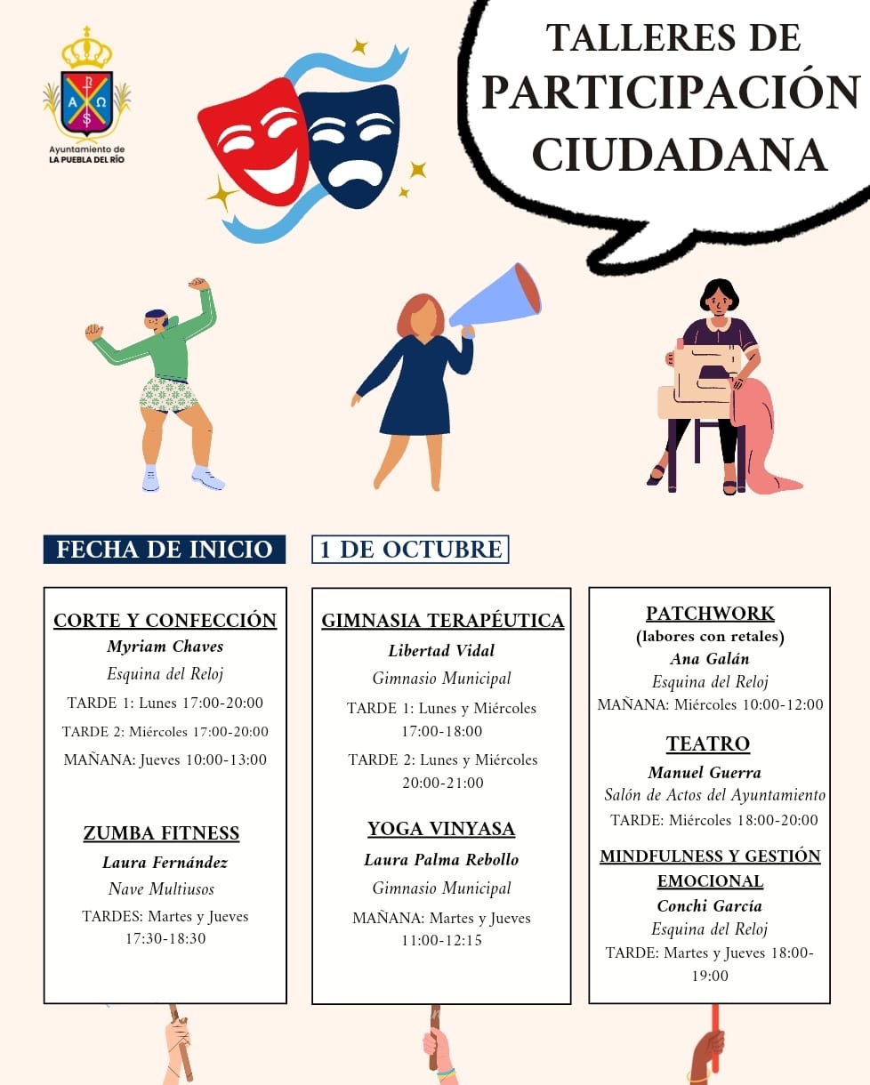 El Ayuntamiento de La Puebla, a través de su Delegación de Participación Ciudadana, presenta esta oferta de Talleres de Participación, con hasta 3 nuevas modalidades respecto del año pasado.