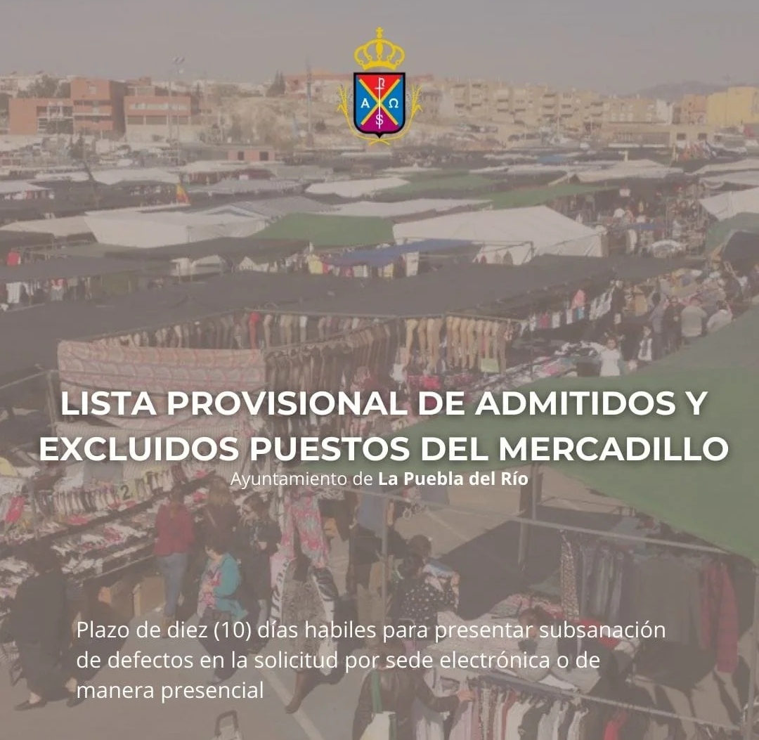 El Ayuntamiento de La Puebla del Río informa de la apertura del plazo para subsanar las solicitudes presentadas en el procedimiento de adjudicación de puestos del Mercadillo Municipal.