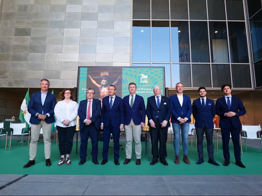 Presentada en Diputación de Sevilla la colaboración de la institución provincial con las Bandas de La Puebla y La Oliva de Salteras para la procesión con motivo del Jubileo de las Cofradías 2025.