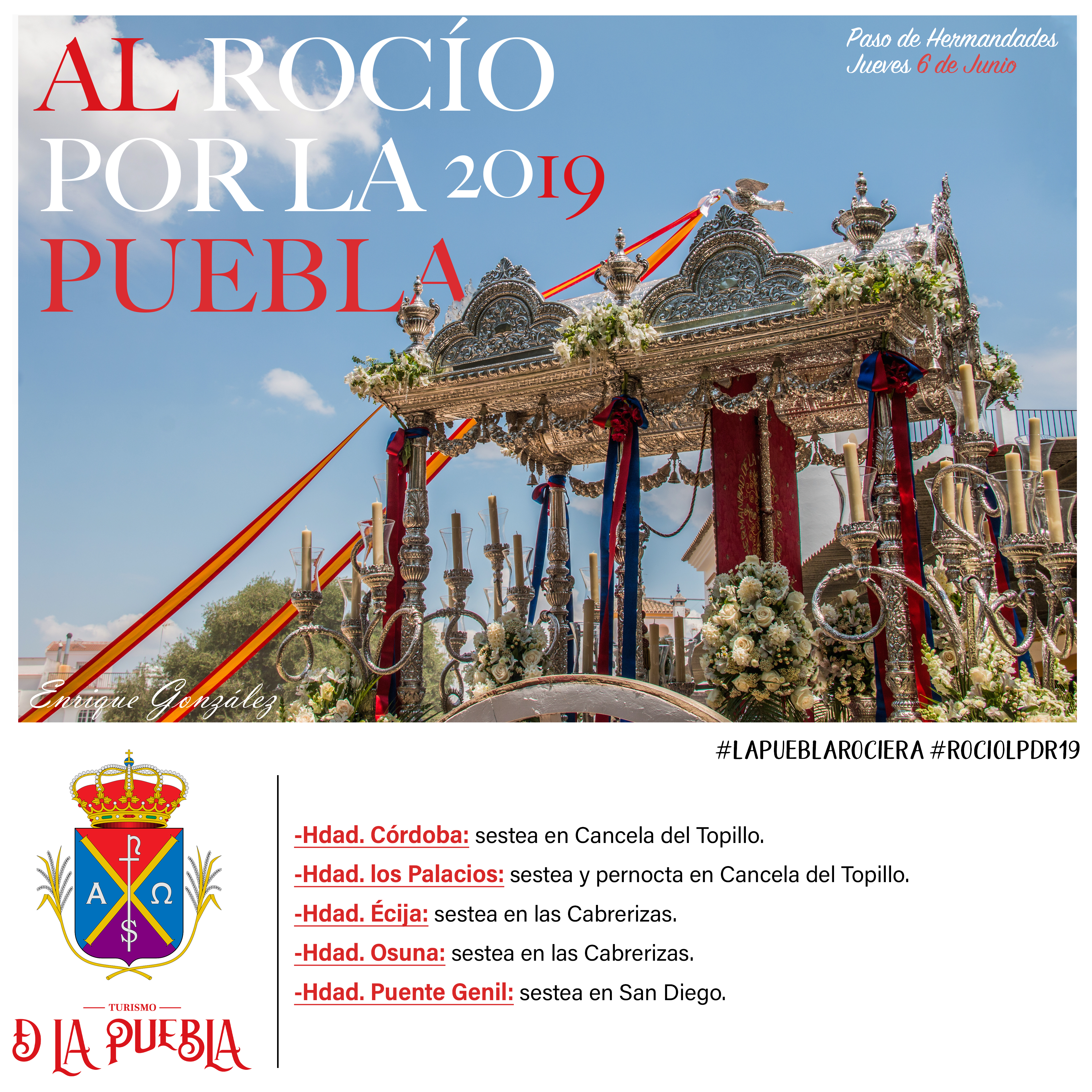 Relación de hermandades rocieras que sestean, pernoctan o cruzan por el término municipal #DeLaPuebla