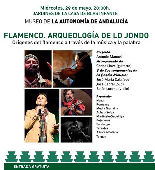 Un espectáculo sobre los orígenes del flamenco a través de la música y la palabra. Presenta Antonio Manuel junto a Carlos Llave (guitarra) y la Banda Morisca. Entrada gratuita