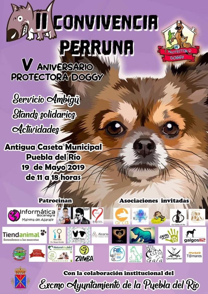 V Aniversario protectora Doggy. Stands solidarios, zumba, pintacaras, concursos y otras actividades, ambigú...