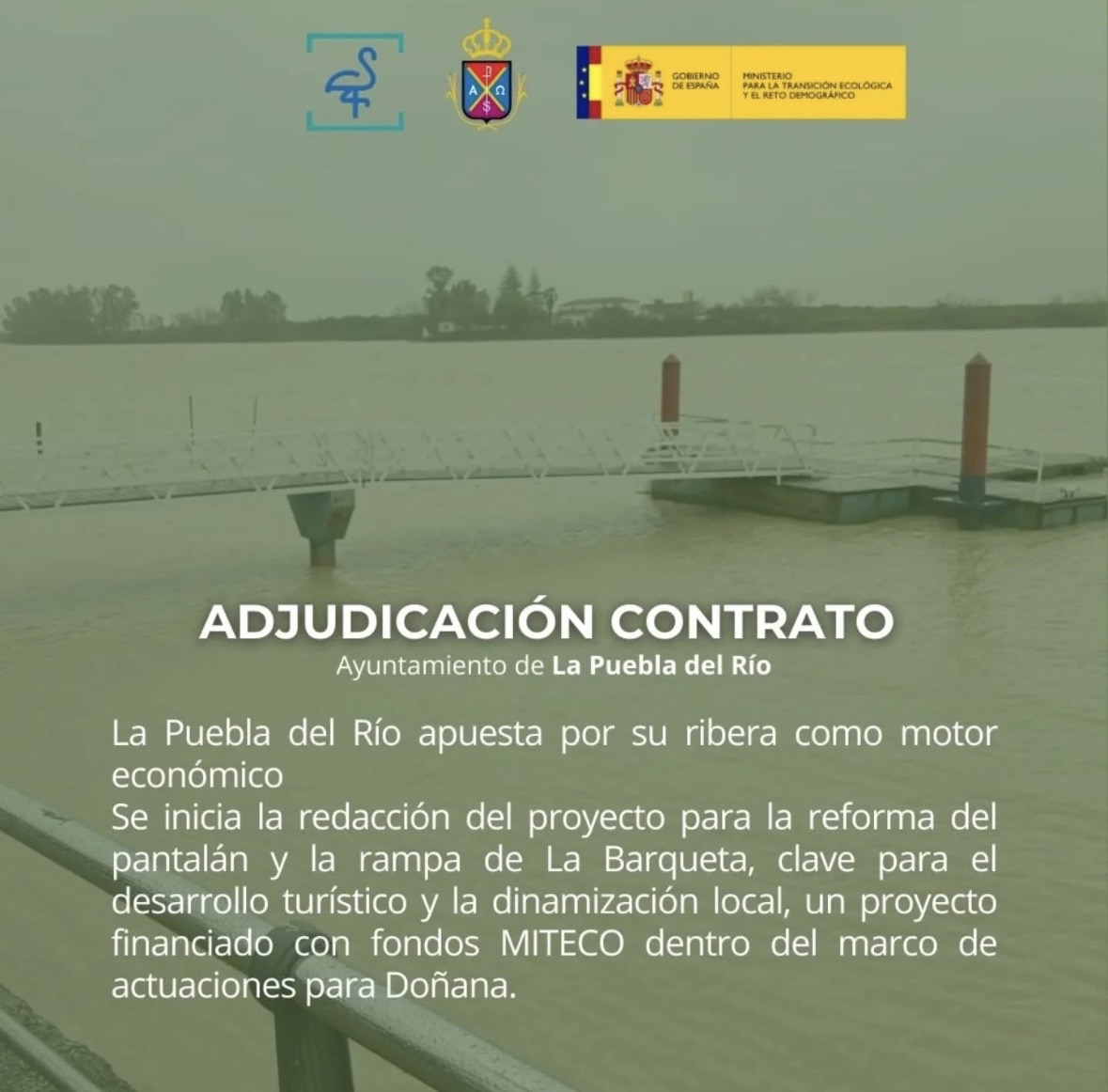El Ayuntamiento de La Puebla del Río ha adjudicado la redacción del proyecto de reforma y mejora del pantalán municipal, ubicado en la Plaza Blas Infante, y conocida como La Barqueta, así como de su rampa y entorno inmediato.