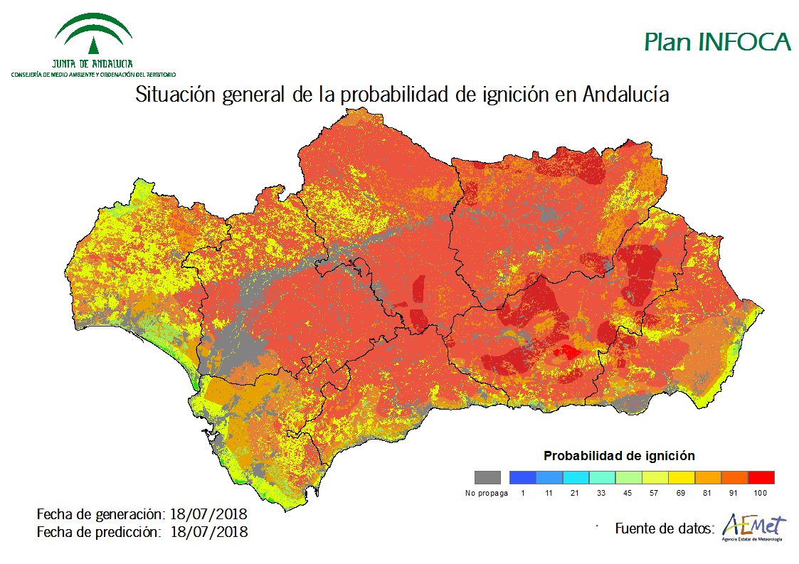 que la provincia de Sevilla está dentro del alto riesgo de ignición publicado este martes, 17 de
