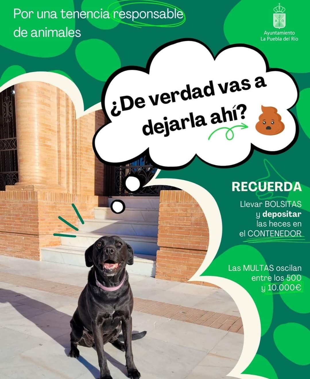 El Ayuntamiento de La Puebla del Río, a través de su Delegación de Salud y Bienestar animal, continúa con la campaña "Por una tenencia responsable de animales", que pretende concienciar a los cigarreros sobre la importancia del cuidado de nuestros amigos peludos y de nuestro precioso entorno.