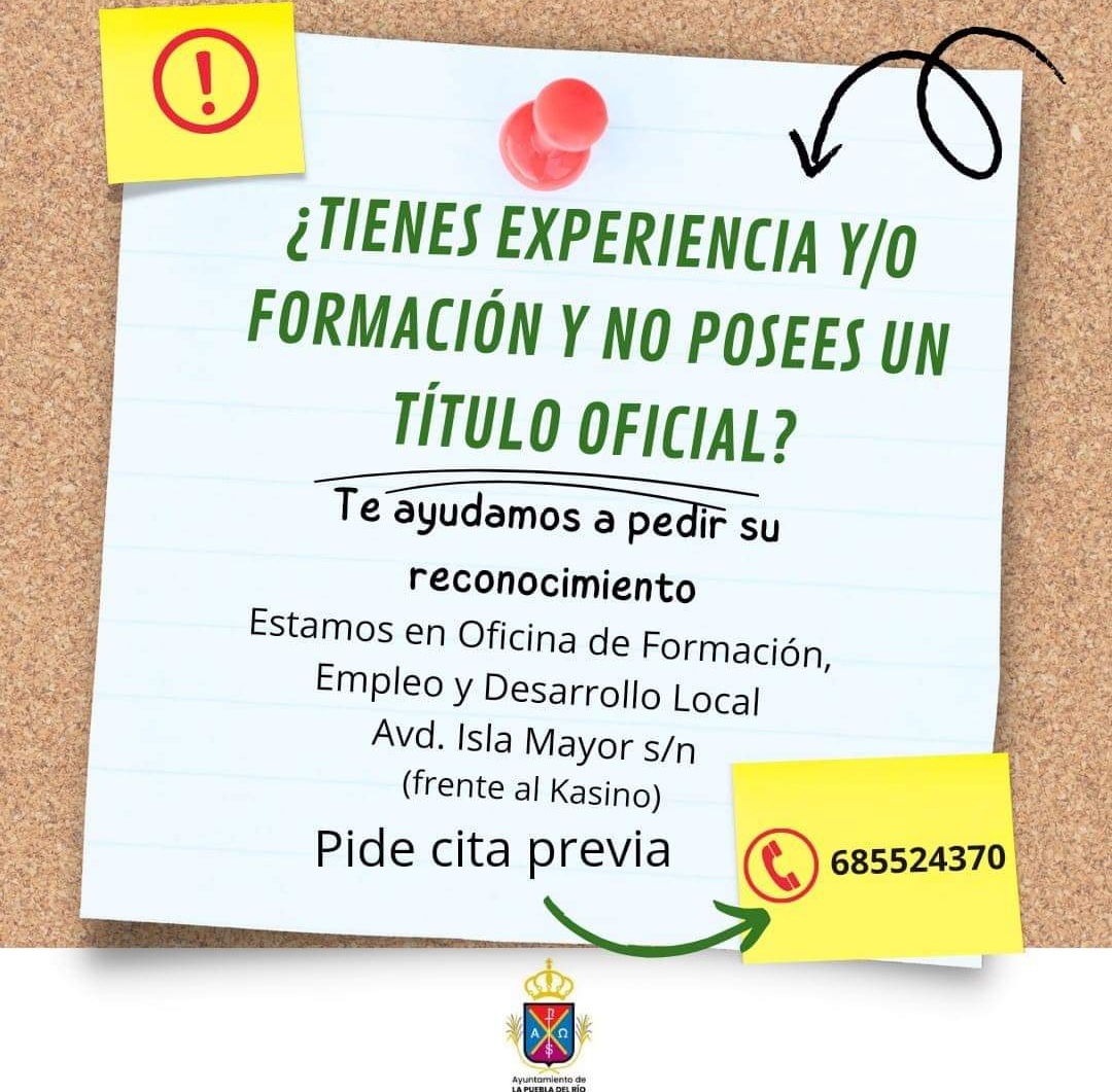 El Ayuntamiento de La Puebla del Río ha lanzado un servicio gratuito para ayudarte a obtener el reconocimiento de tus conocimientos profesionales ante la Junta de Andalucía.