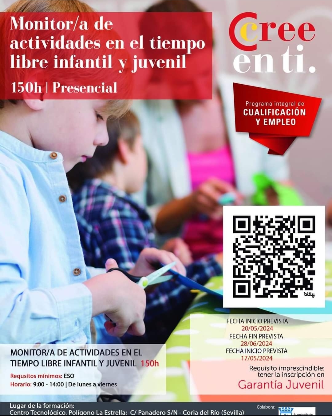 Hasta el próximo 17 de mayo, los jóvenes cigarreros podrán inscribirse en el Curso de Monitor/a de Actividades en el Tiempo Libre Infantil y Juvenil que ofrece en nuestro pueblo vecino de Coria, la Cámara de Comercio de Sevilla.