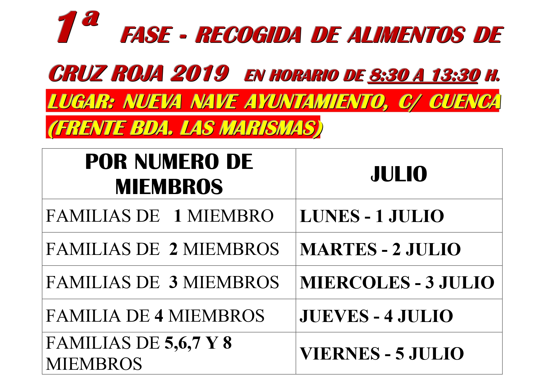 El lunes 1 de julio comienza el reparto de la primera fase del programa de Cruz Roja 2019