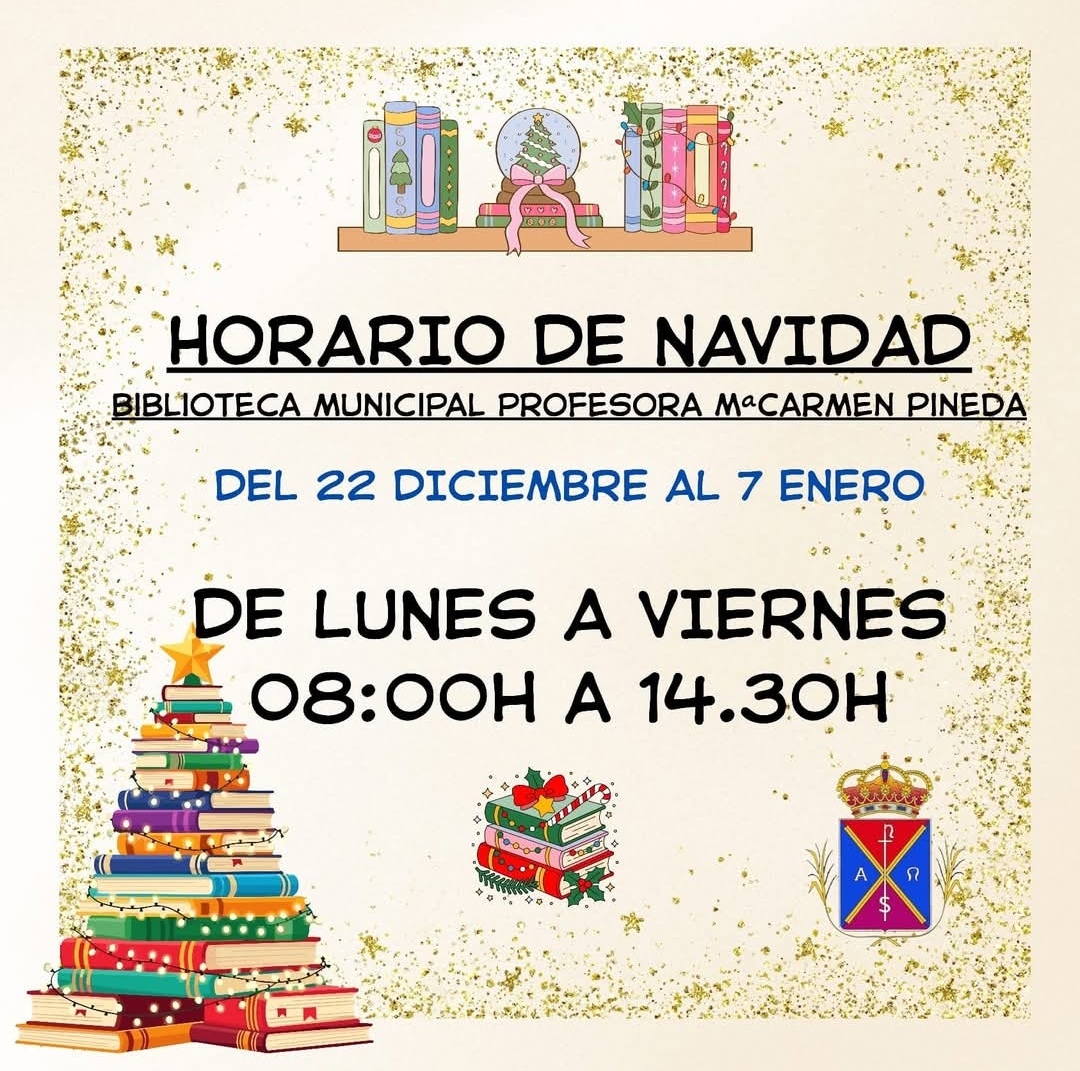 Informamos a todos nuestros vecinos y vecinas de que, con motivo de las fiestas navideñas, la Biblioteca Municipal ajustará su horario de apertura.