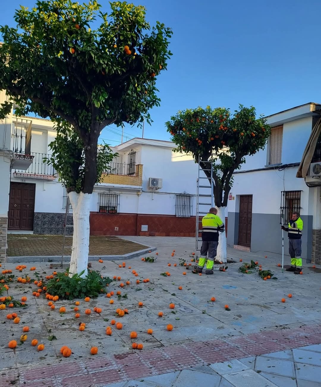 El Ayuntamiento pone en marcha la recogida de naranjas en calles y plazas del municipio.