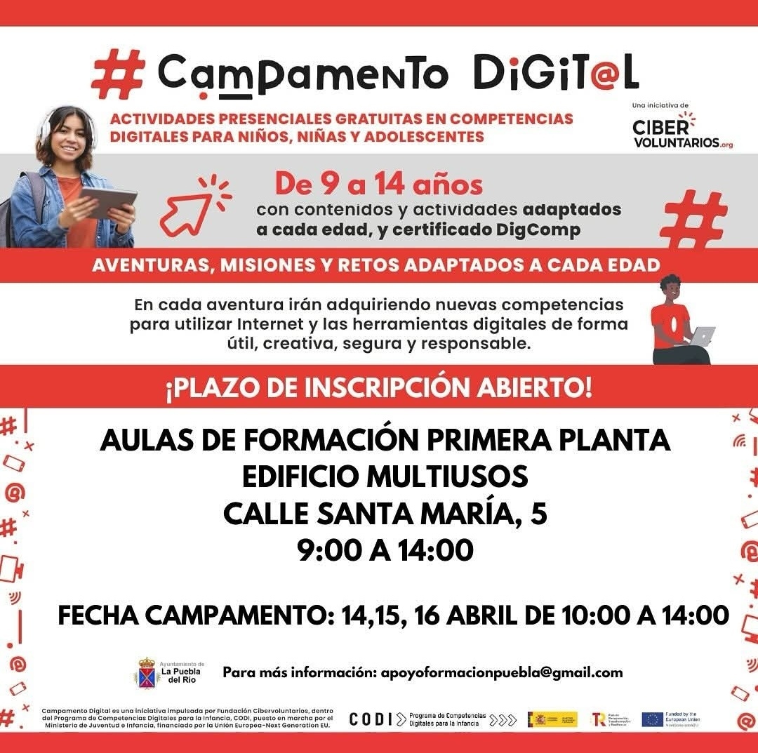Inscríbete ya en las Aulas de Formación de la primera planta del Edificio Multiusos de 09:00 a 14:00, antes del 26 de marzo, o si prefieres, puedes hacerlo a través del correo electrónico apoyoformacionpuebla@gmail.com