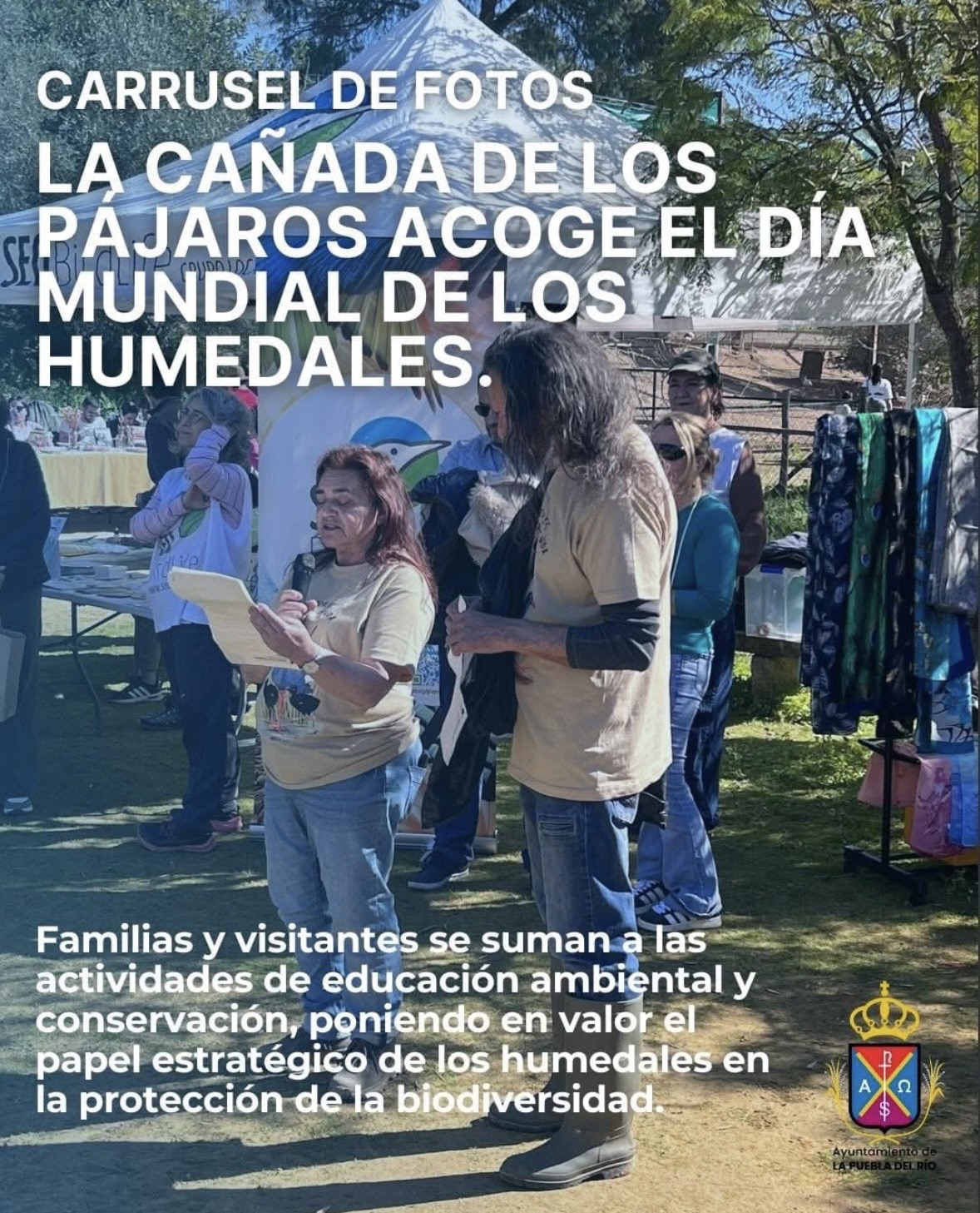 Gran acogida de público en la jornada celebrada ayer sábado 21 de febrero en la Cañada de los Pájaros con motivo del Día Mundial de los Humedales, donde numerosas familias y visitantes participaron en las actividades de educación ambiental y conservación.