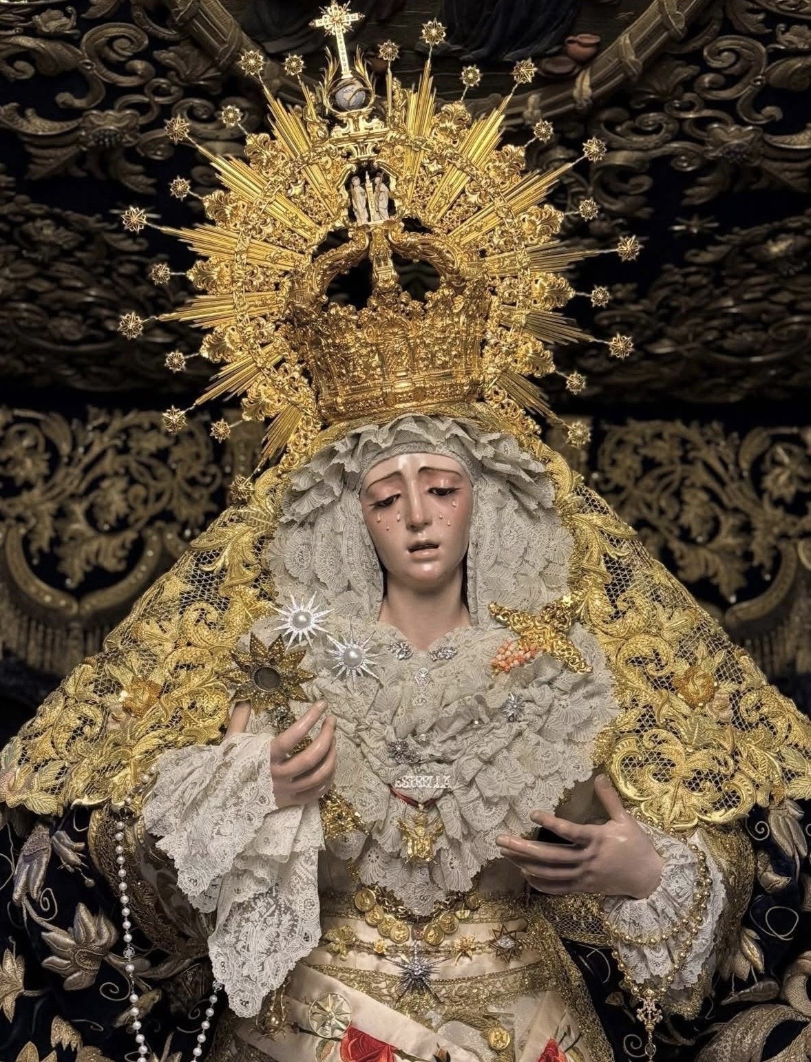Y, por supuesto, nuestra querida Virgen de los Dolores de La Puebla del Río, también luce gracias a su trabajo y dedicación.
