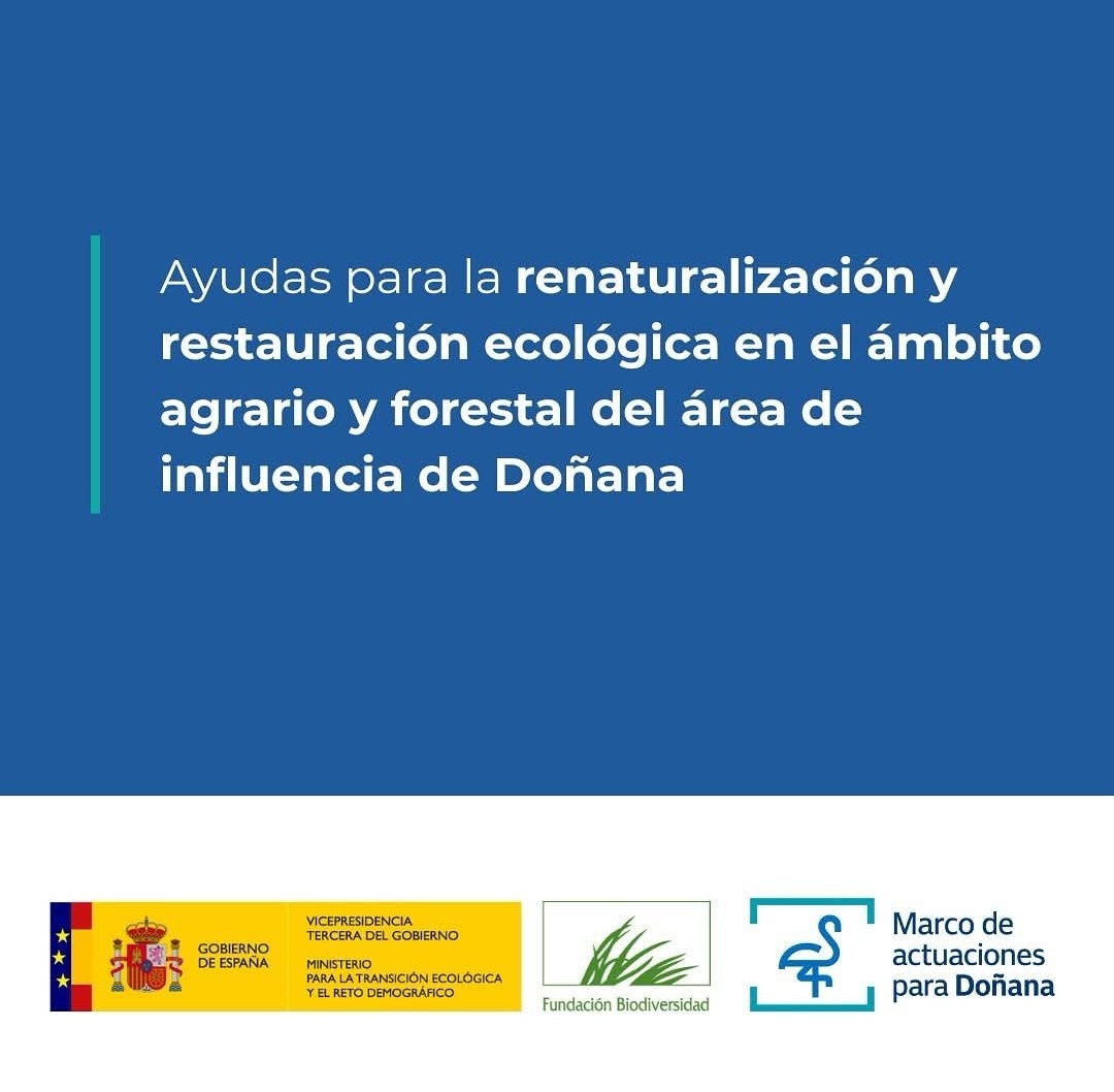 El Ministerio para la Transición Ecológica, a través de la Fundación Biodiversidad, ha abierto una importante convocatoria de subvenciones dirigida a fomentar actuaciones de renaturalización y restauración ecológica en terrenos agrarios y forestales del área de influencia de Doñana -- entre ellos, La Puebla del Río.