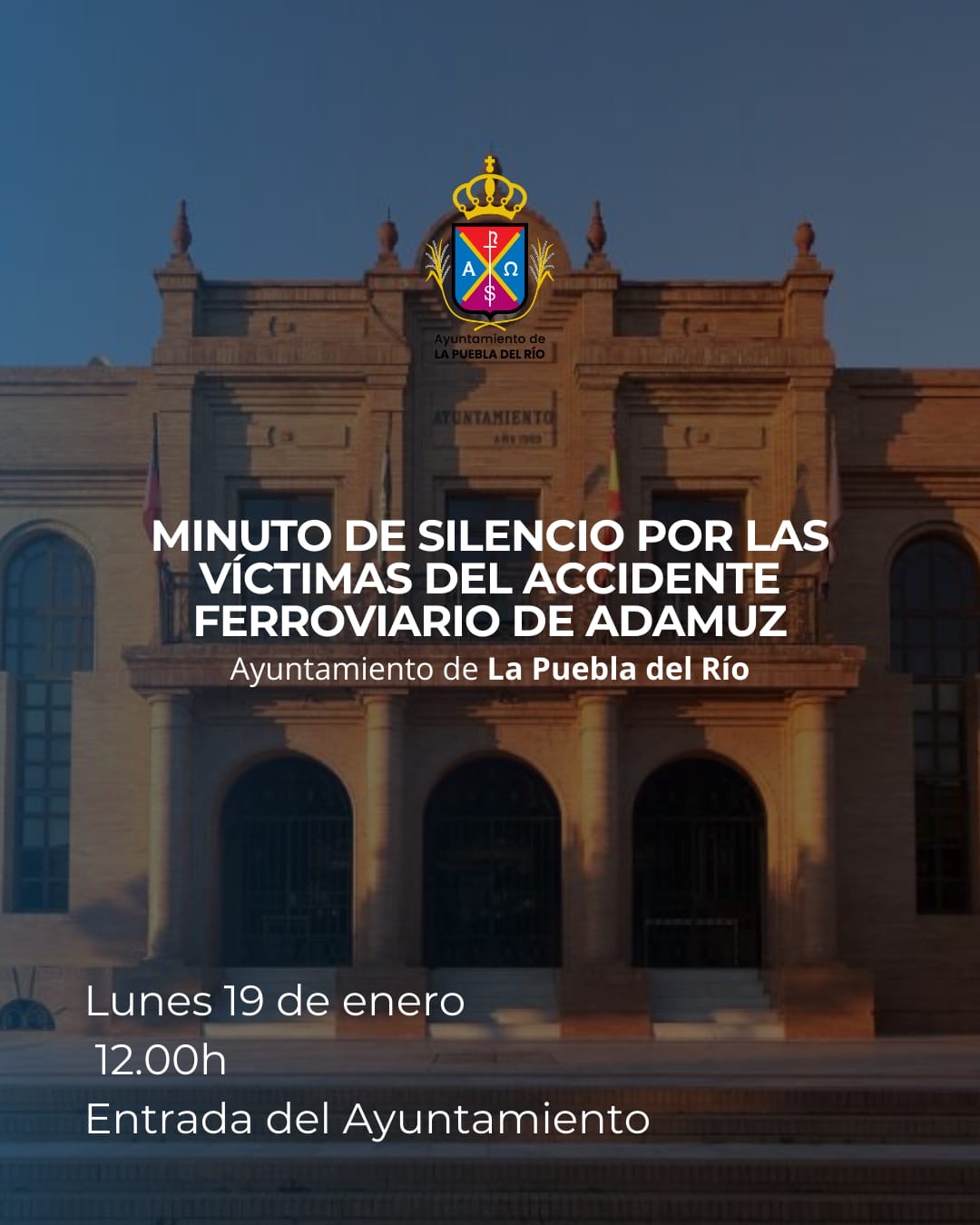 El Ayuntamiento de La Puebla del Río manifiesta su más profundo pesar por el tráfico accidente de tren ocurrido en el municipio de Adamuz.