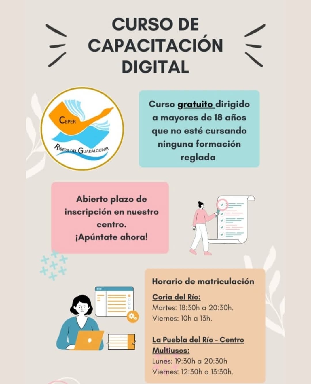 El C.E.PER. Ribera del Guadalquivir abre el plazo de inscripción para un curso gratuito que te permitirá mejorar tus competencias digitales y, lo más importante...