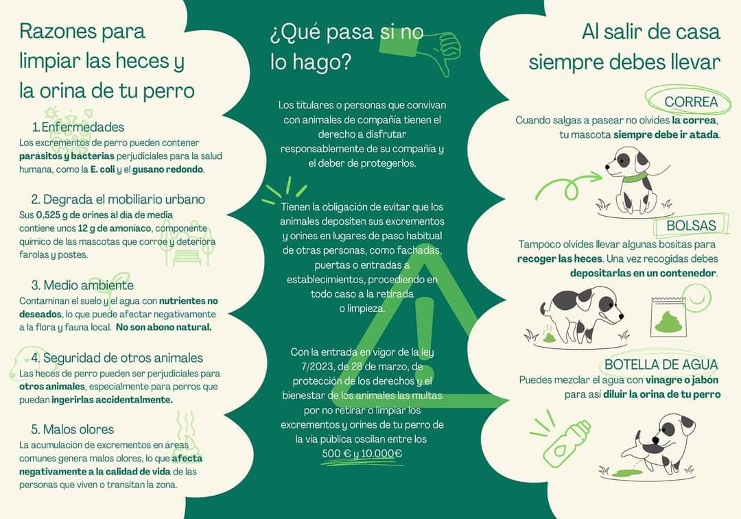 Todos tenemos un papel fundamental en el cuidado y mantenimiento de nuestro pueblo. Cuando paseamos a nuestros queridos amigos peludos, es esencial recoger sus heces y desecharlas correctamente.