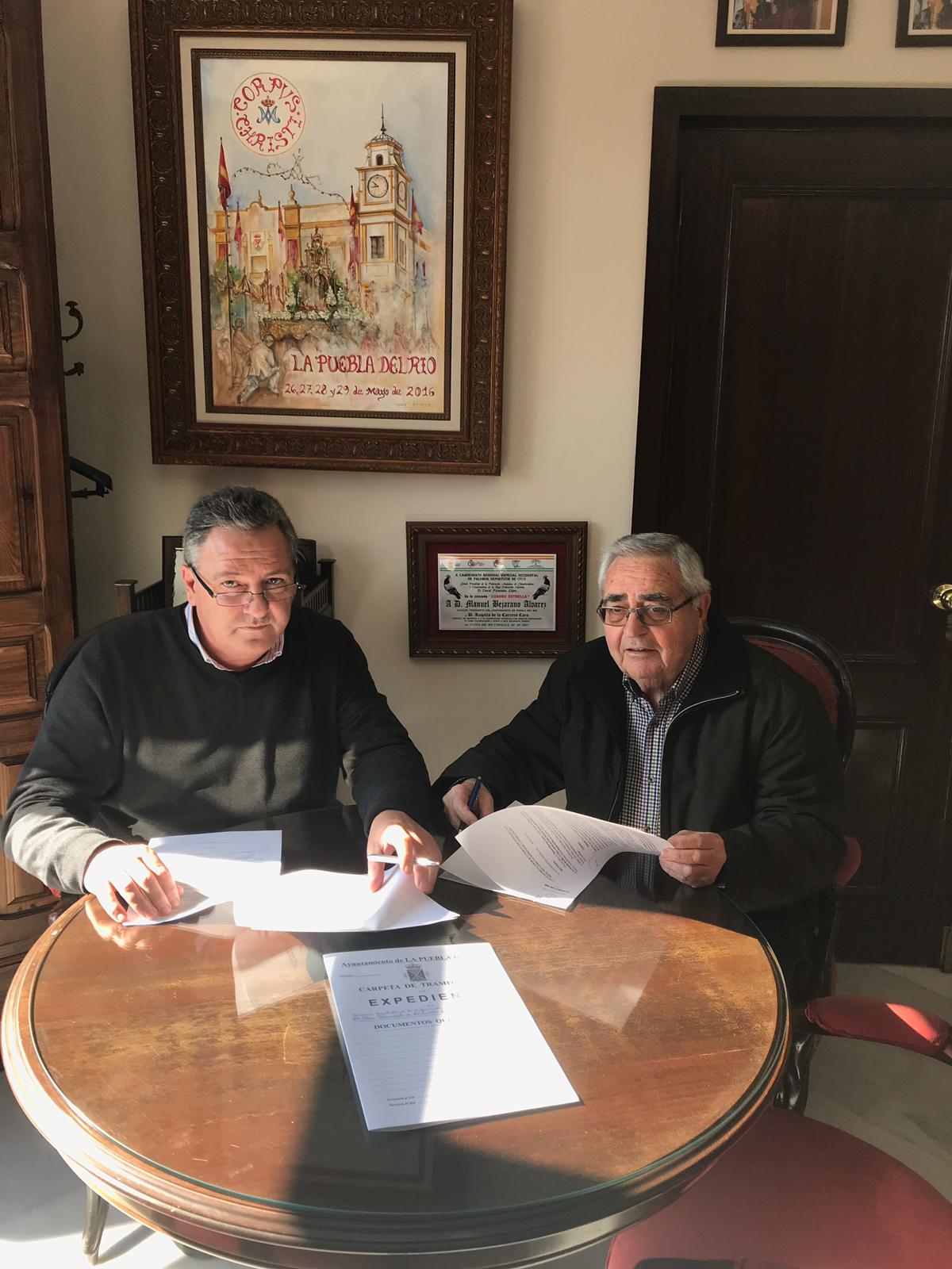 El alcalde de la localidad, Manuel Bejarano; y el hermano mayor de la Hermandad Sacramental cigarrera, Manuel Ángel Romero; procedieron en estas fechas a la firma del acuerdo de renovación del convenio de colaboración entre el Consistorio cigarrero y la corporación de cara al año 2019.