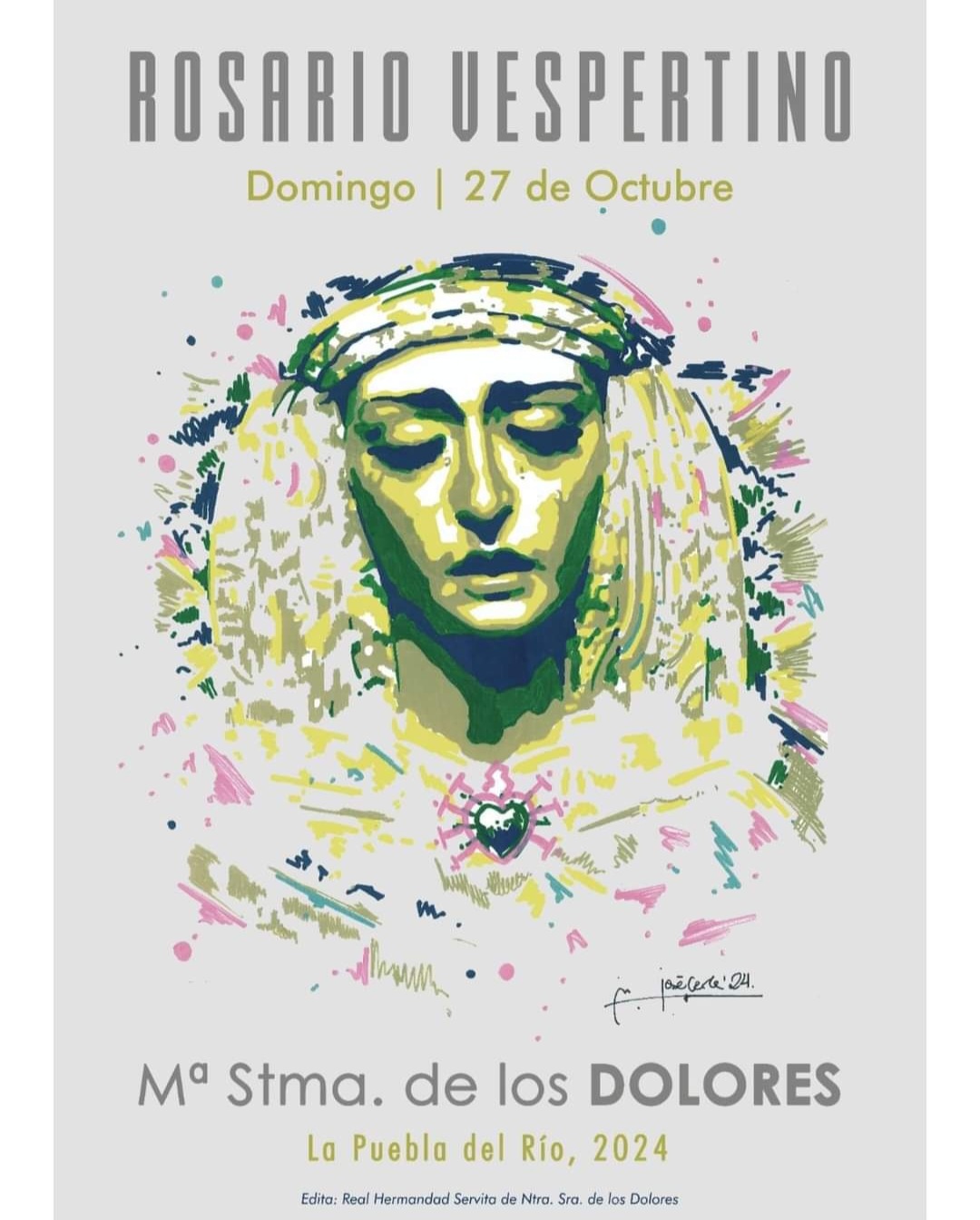 Esta tarde tenemos una cita con el Rosario Vespertino organizado por la hermandad servita cigarrera, gracias a la cual tendremos el privilegio de disfrutar de la magnífica talla de nuestra Virgen de los Dolores por las calles de nuestro pueblo.