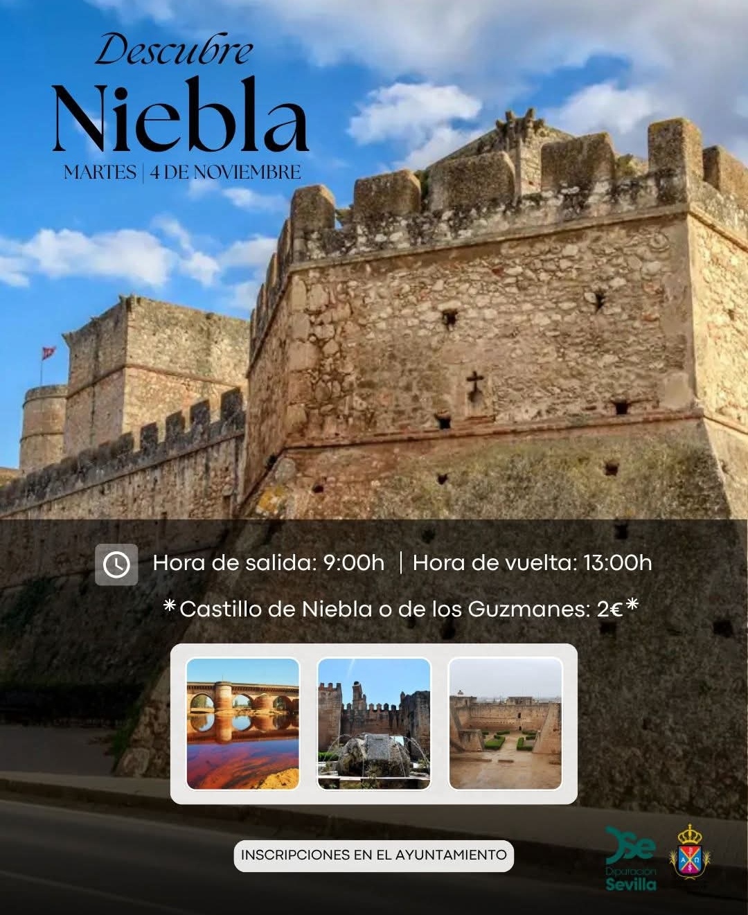 El próximo martes, 4 de noviembre, viajaremos hasta la histórica villa de Niebla, una joya monumental de Huelva cargada de historia y patrimonio.