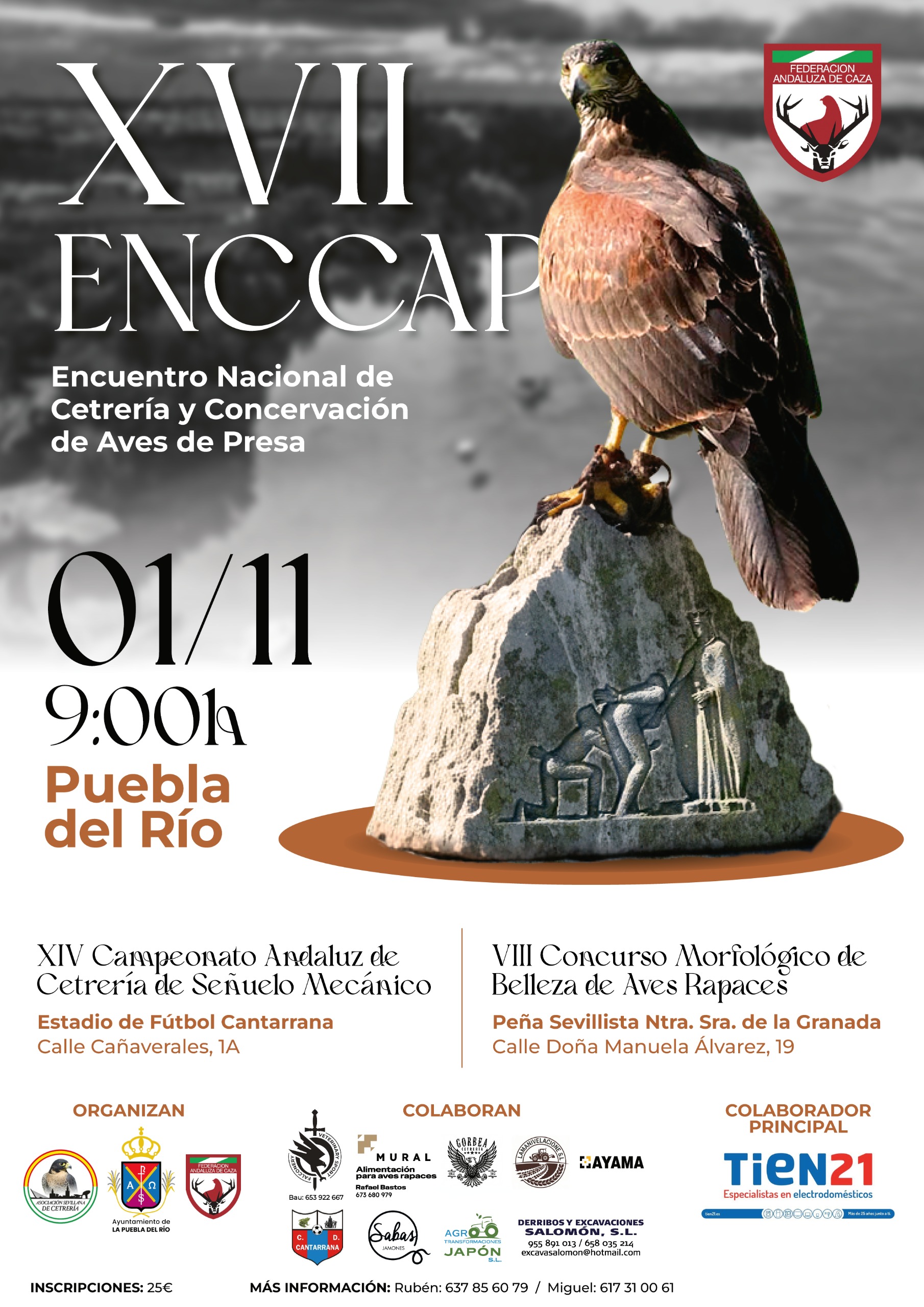 El próximo 1 de noviembre, desde las 09:00h. nuestra localidad acogerá el XVII Encuentro Nacional de Cetrería y Conservación de Aves de Presa, una cita imprescindible para los amantes de la naturaleza, las aves rapaces y la tradición cetrera.