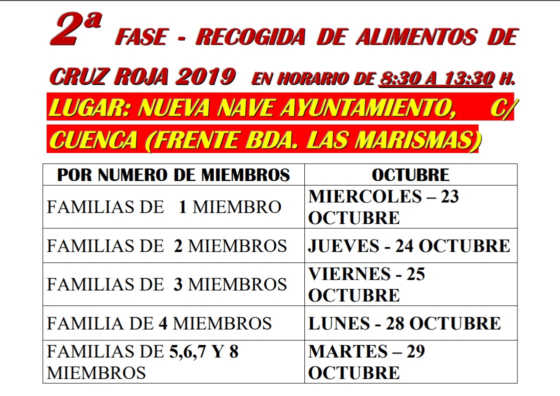 Información sobre el reparto de alimentos correspondiente a la segunda fase del programa de Cruz Roja