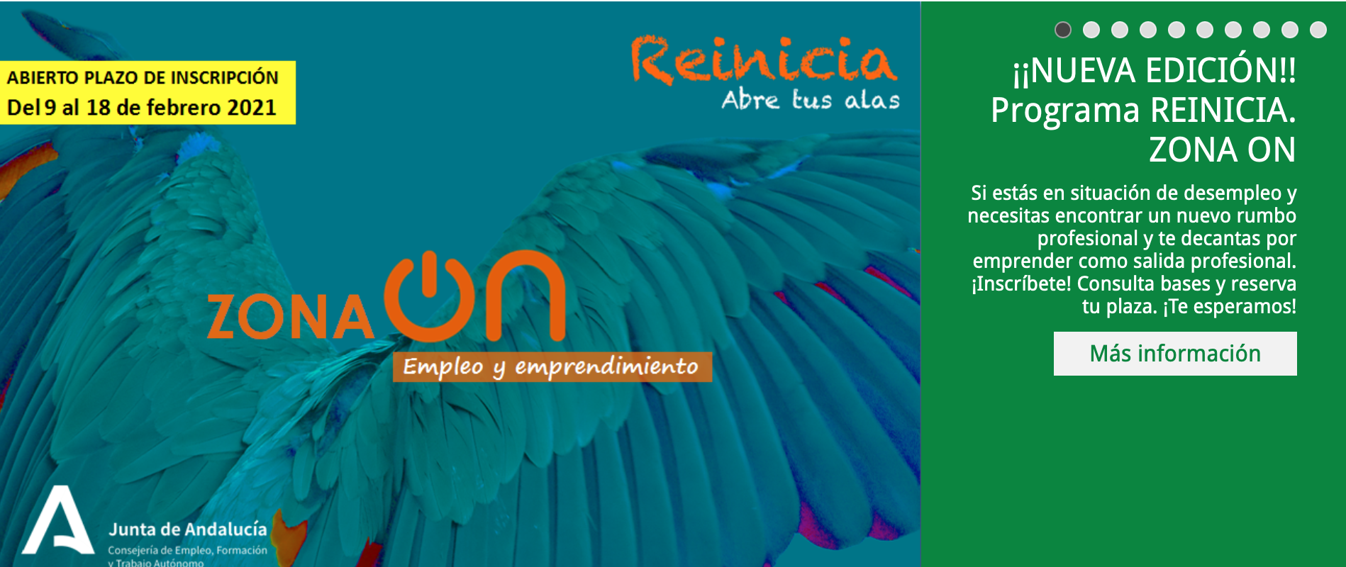 Andalucía Emprende, a través del programa Reinicia, pone en marcha la Zona On, una iniciativa dirigida a 40 personas en situación de desempleo que necesitan encontrar un nuevo rumbo profesional y contemplen la posibilidad de emprender como salida profesional.
